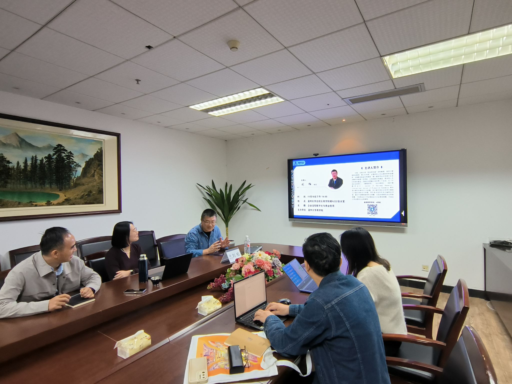 11月18日下午,瓯越商道论坛第四期在北校区信息楼A222举行。本期论坛邀请吉林大学刘柏教授主讲,主题为《企业流程数字化与商业信用》,由温州大学商学院陈文芝副院长主持。刘柏教授系吉林大学“匡亚明学者”领军教授,商学与管理学院教授、博士生导师。主要研究公司治理和财务金融等。宝钢教育基金优秀教师,第27届世界经济预测大会亚洲青年学者唯一获得者。主持国家社科基金、教育部人文社科规划基金、国家发改委重大项目等二十余项,在《中国社会科学》、《管理世界》、《会计研究》、《南开管理评论》、Journal of Business Research、International Journal of Production Economics 等中英文期刊发表论文100余篇,多次被中国社会科学文摘和人大复印资料全文转载。