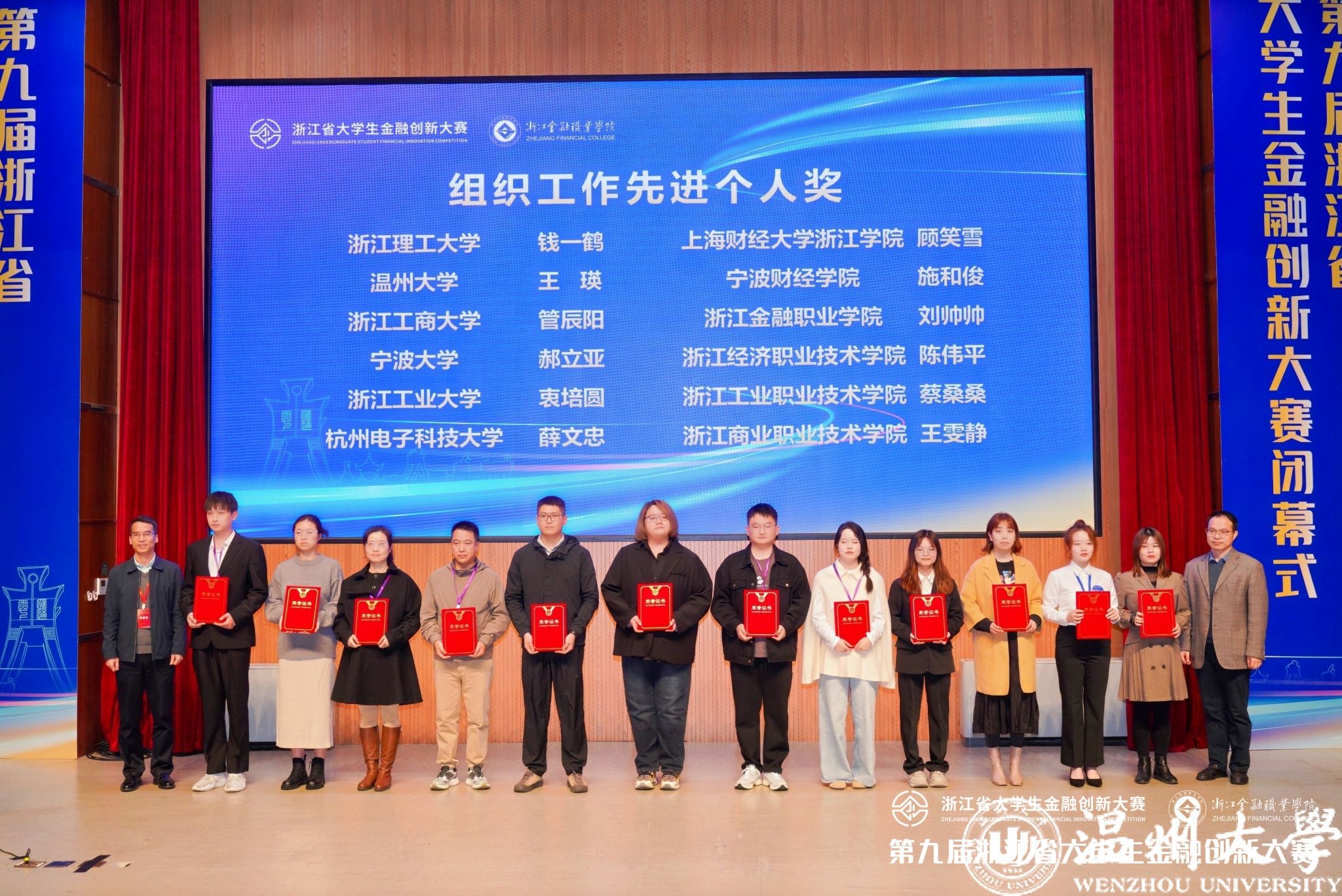 2024年11月24日,浙江省第九届金融创新大赛在浙江金融职业技术学院圆满落幕,这一赛事不仅为全省高校的金融专业学生提供了一个展示自我、交流学习的平台,同时也促进了金融机构与学术界之间的合作与交流。在本次大赛中,温州大学的学子们再次以优异的表现赢得了广泛赞誉,共斩获了3项金奖、6项银奖及13项铜奖,成绩斐然。