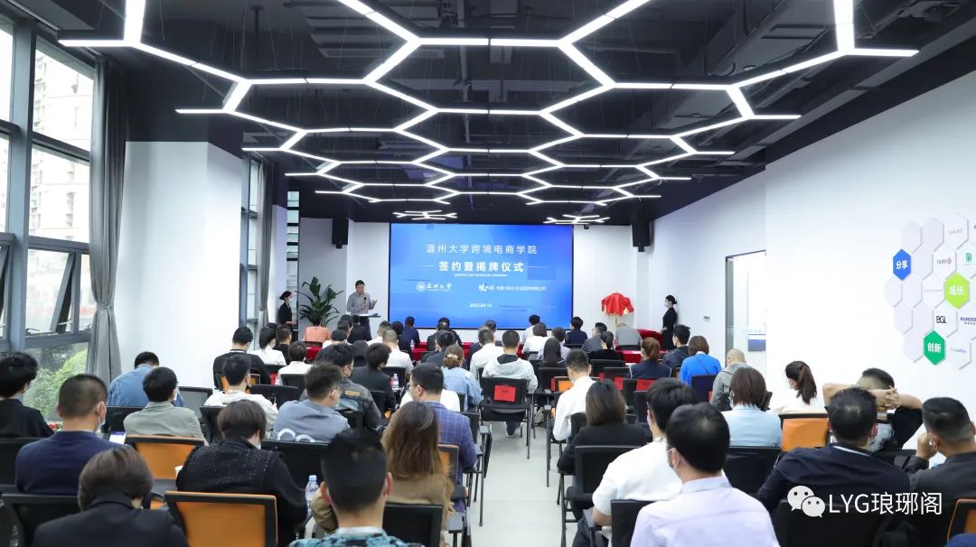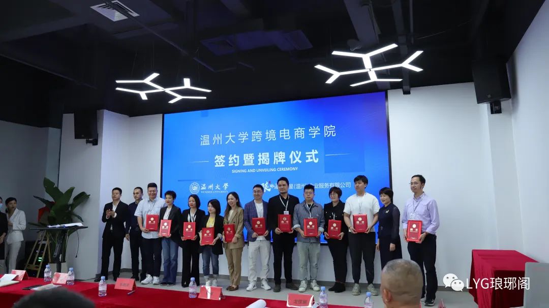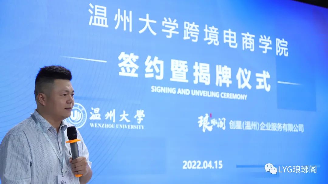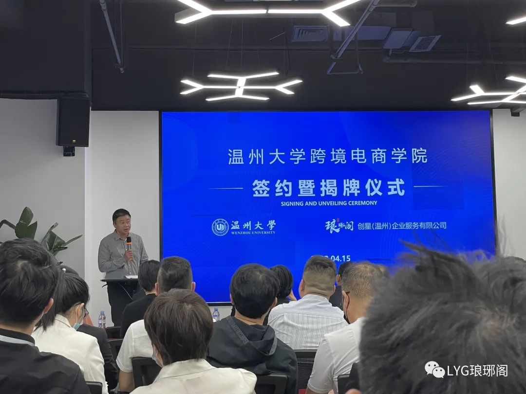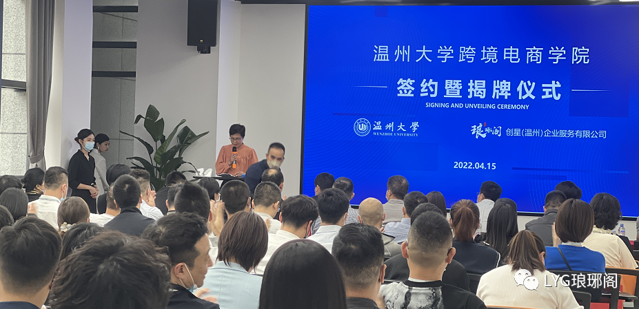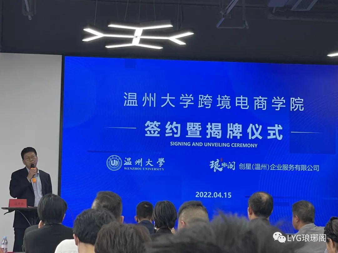 2022年04月15日今日下午,温州大学与创星(温州)企业服务有限公司共建温州大学跨境电商学院签约暨揭牌仪式在工会大厦成功举办。温州市商务局局长彭魏滨、温州大学党委副书记庄兴忠、创星(温州)企业服务有限公司董事长李聪斌等相关合作单位负责人,阿里巴巴国际站区域负责人、阿里巴巴新享荟班委企业负责人、1688超级工厂温州团队负责人以及温州各大外贸商会会长等30余家温州跨境电商企业代表参加活动。