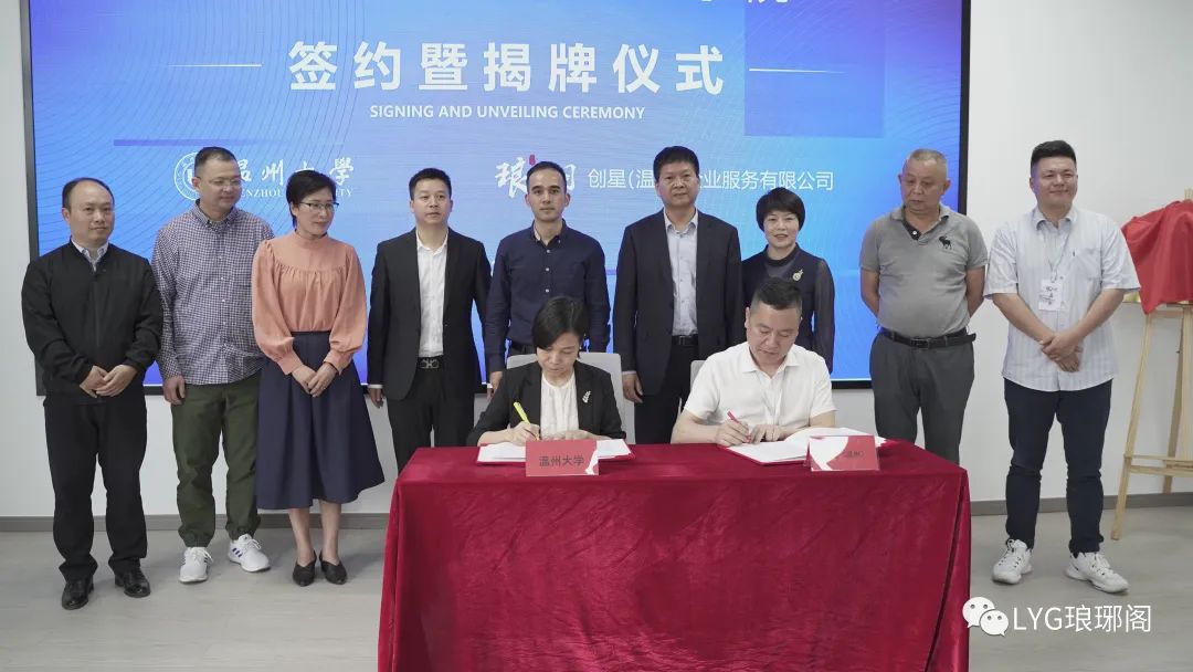 创星(温州)企业服务有限公司董事长李聪斌与温大商学院院长胡振华教授共同为产业学院揭牌。