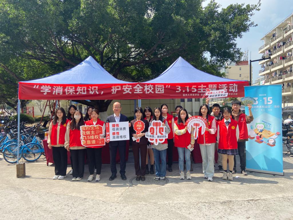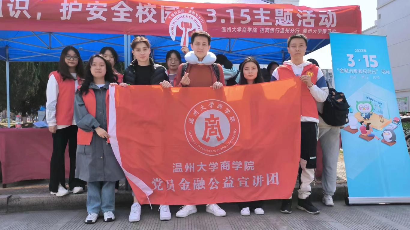 “我觉得这样的活动很有意思,作为商科学生,我也不仅可以把所学的消费者权益保护和金融专业知识讲解给其他同学听,还更加意识到作为商科专业学生所肩负的社会责任”,宣讲团成员21级研究生董顺在接受采访时这样说。在第40个“3·15国际消费者权益日”当天,温州大学商学院以“浙江省金融教育示范基地”为载体,联合招商银行温州分行、学校保卫处在温州大学各生活区广泛开展“学消保知识,护安全校园”3.15消费者权益保护知识主题宣传活动,引导广大师生科学、合理消费,保护合法权益权益,助力防范化解金融风险,营造和谐稳定的金融环境。