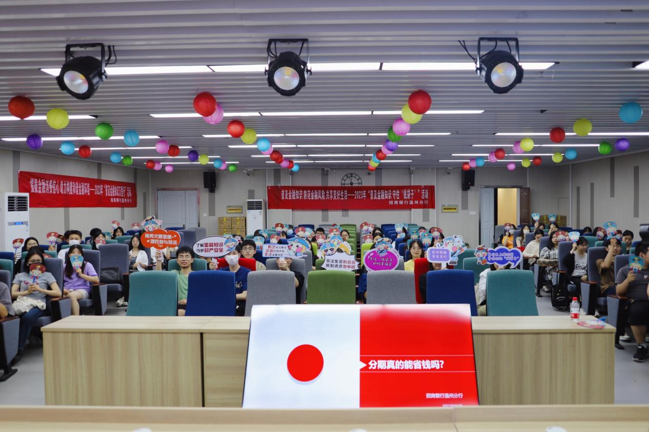 为切实加强金融知识宣传普及,提升大学生金融素养,充分发挥浙江省金融教育示范基地工作制度示范性,2023年6月13日晚,招商银行温州分行联合温州大学商学院开展“金融知识万里行”主题活动。活动邀请了招商银行温州分行讲师卢时辉为温州大学商学院80余名学生开展“分期真的能省钱吗”的宣讲活动,旨在提高学生识别和防范金融风险的能力。