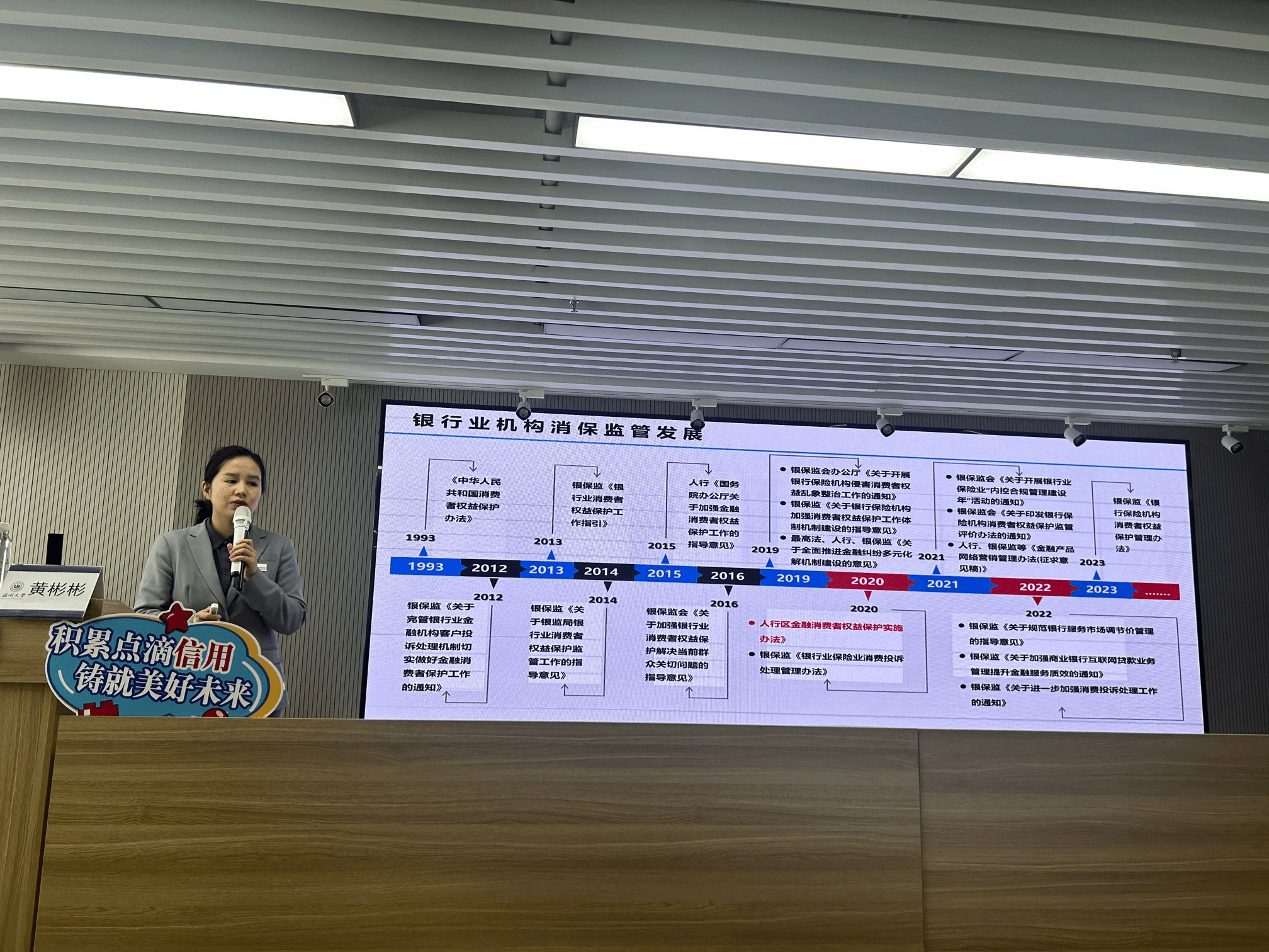 2024年,温州分行已制定基地全年活动计划,制定月度授课主题,授课范围包括消费者权益包括与金融安全、信用卡安全知识、理性投资避免理财雷区等主题。前期,分行金融讲师已在金融教育基地为温州大学商学院学生开展消费者权益保护专题讲座。讲座从《消费者权益保护法》的立法背景、《消费者权益保护法》的重要制度、消费者权益保护中的常见的问题以及消费者的权利保护四个方面展开,通过具体的案例向同学们科普相关法律知识,普及消费者八大权益,增强学生群体诚实守信、依法合规意识。