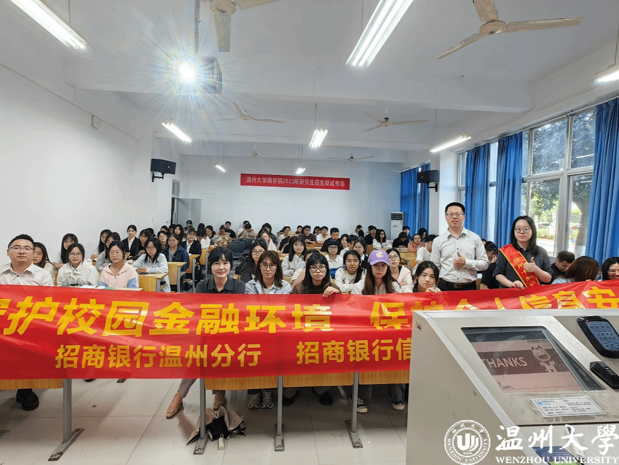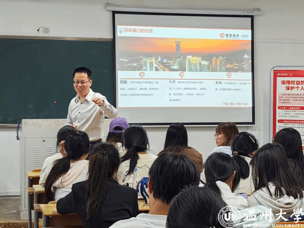 为进一步宣传金融安全知识,提高防范意识,帮助当代大学生树立正确消费观念,预防潜在的校园信息及信用卡安全,2024年10月23日下午,温州大学金融知识宣教协会邀请了招商银行温州分行的讲师麻诗瑾、娄志标为同学们带来专题讲座“校园生活中的个人信息保护”和“信用卡应知小知识”。