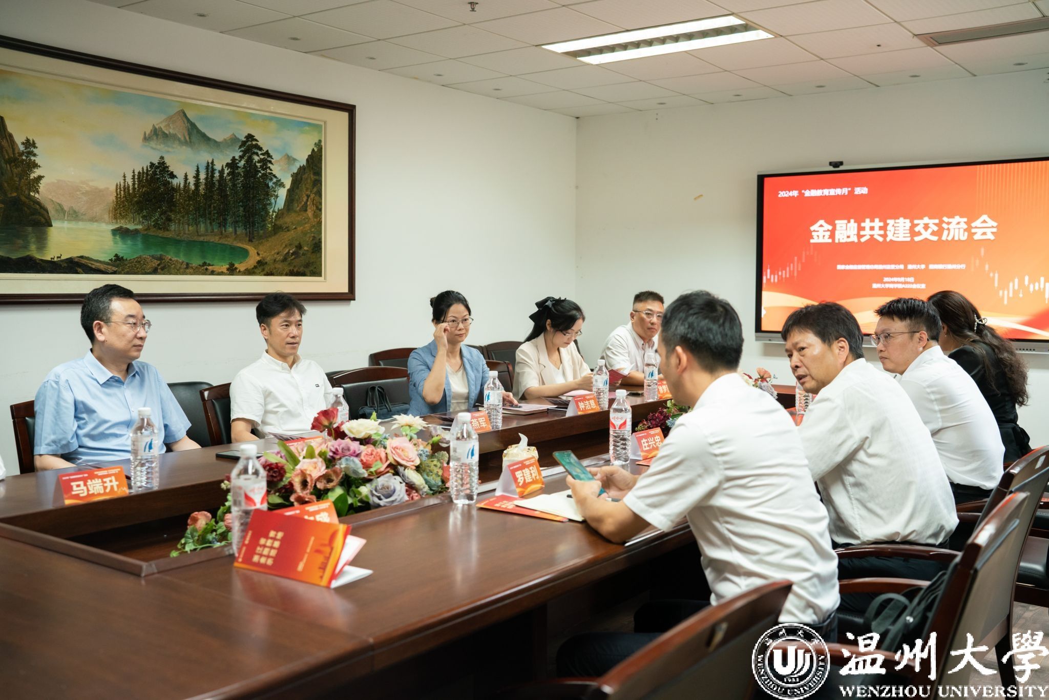 近日,温州大学商学院与招商银行温州分行等金融机构携手,就“银校金融共建”议题展开了一场深入而富有成效的座谈交流。出席此次活动的有温州大学商学院院长罗建利、党委书记唐华、党委副书记曾蓓蕾,教工第一党支部书记熊礼慧、副书记林德根,以及招商银行温州分行行长袁森等领导。