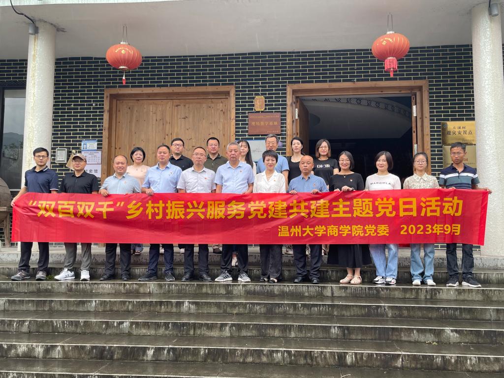 在温州大学党委“双百双千”助力乡村振兴计划的大力助推下,商学院学院高举党建共建服务地方,助力乡村振兴的大旗,9月5日上午,温州大学商学院一行领导前往泰顺县司前镇左溪村开展“双百双千”乡村振兴服务党建共建主题党日活动。学院教工第一党支部与泰顺县司前镇左溪村党支部签约助力乡村振兴党建共同体。