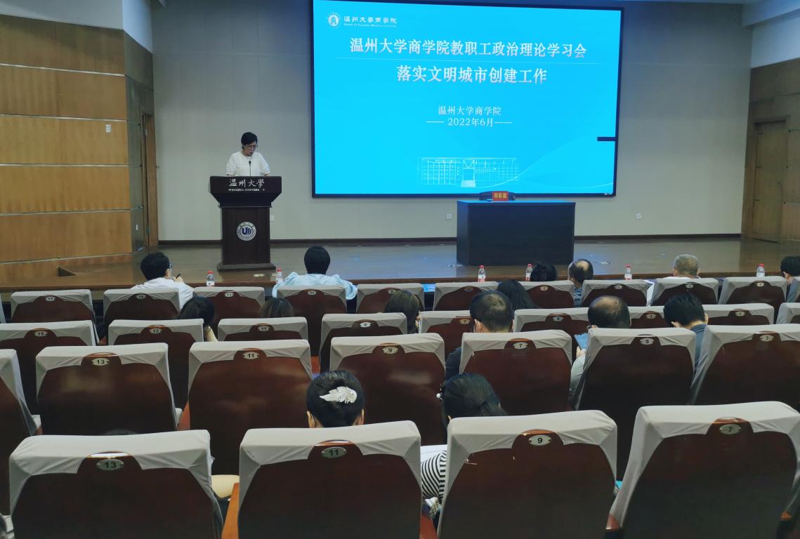 其次,郑彩莲书记就温州大学落实文明城市创建工作作出部署,她带领大家学习了温州大学落实文明城市创建工作近期任务单,并要求各位老师对照自查,如有没做到位的立即整改到位。她强调要着力提升师生文明素养,助力我市打造全域化高水平全国文明城市,营造人人参与文明建设的校园氛围。