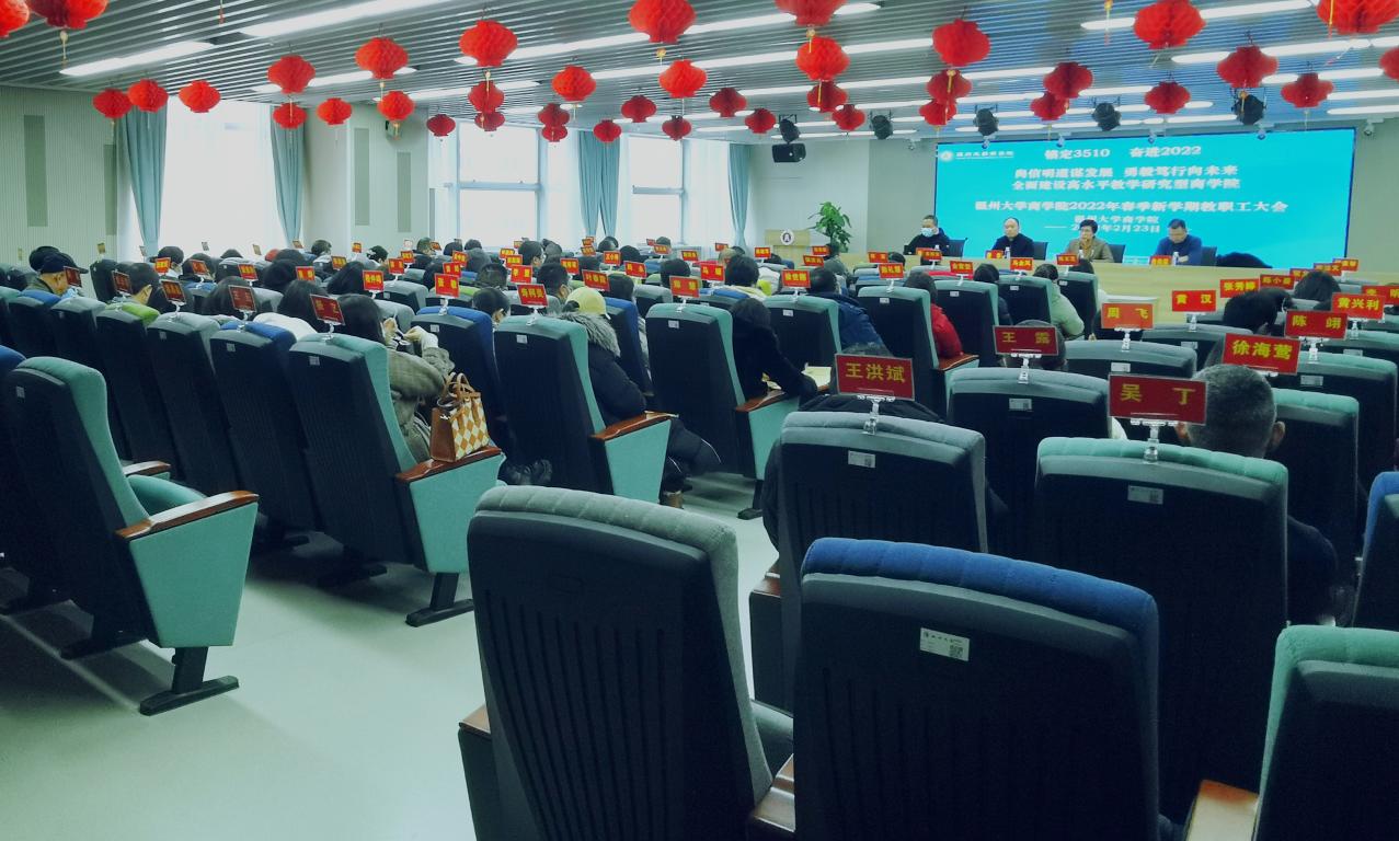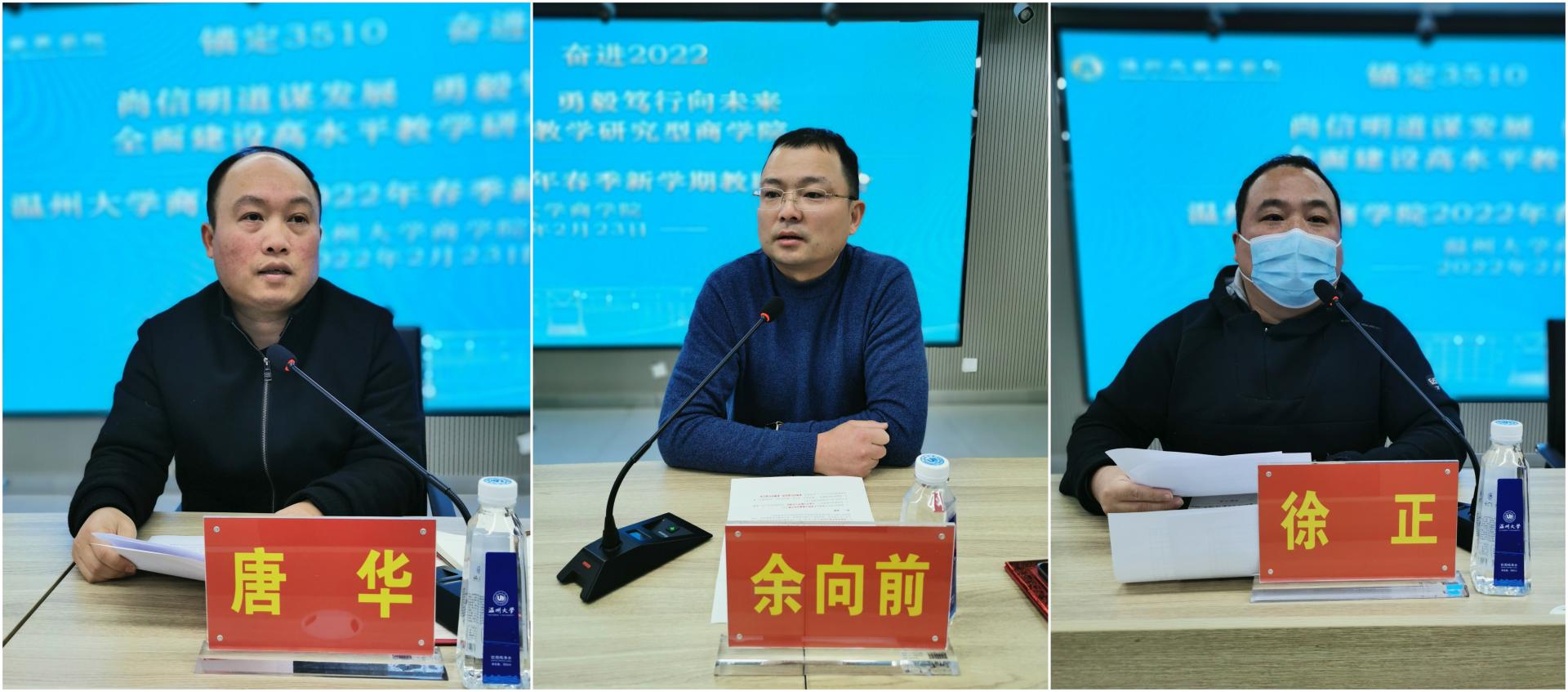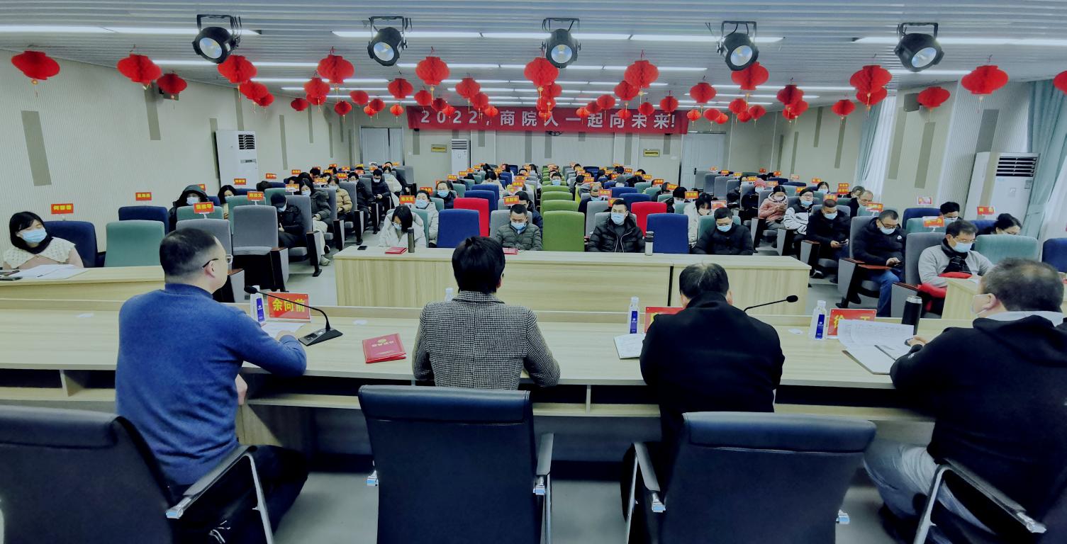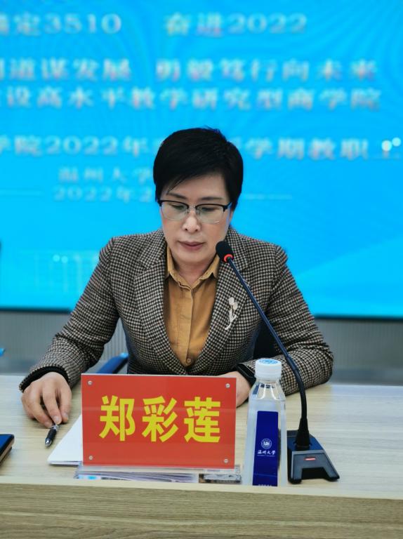 锚定3510,奋进2022,尚信明道谋发展,勇毅笃行向未来,全面建设高水平教学研究型商学院。2022年2月23日,商学院在商院楼A226仲辉商道讲堂召开2022年春季新学期教职工大会,为新学期工作谋篇布局。会议由学院党委书记郑彩莲主持。