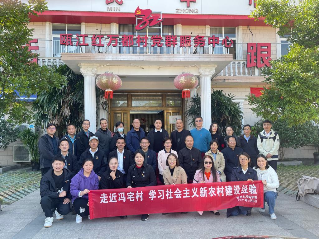 2021年11月9日,由温州大学商学院党委主办、商学院教工第六党支部和商学院妇联共同承办的“走近冯宅村、学习社会主义新农村建设经验”活动在平阳冯宅村举行。