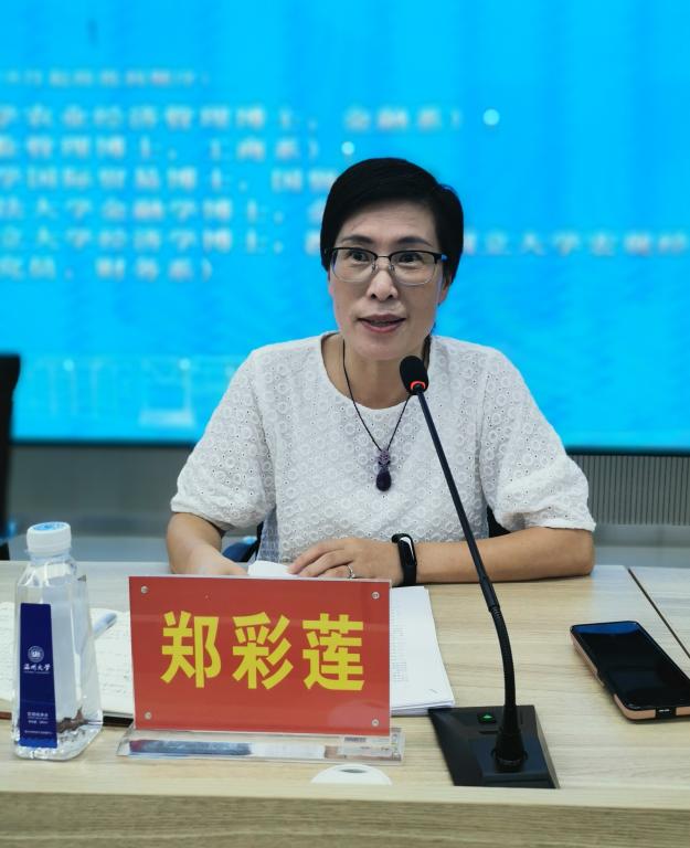 郑彩莲书记首先介绍了郑阳阳、李慧慧、章素珍、熊礼慧、张博等五位新入职的博士,欢迎他们加入商学院大家庭,希望各位新教师尽快适应新环境,时刻牢记立德树人的初心,为校院发展做贡献,学院还将专门为新教师举行入职仪式。