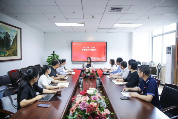6月16日下午,商学院教工第二支部在北校区商学楼A222会议室开展师德师风专题教育活动,会议由支部书记陈文芝老师主持,支部全体党员及国贸系全体教师参加。