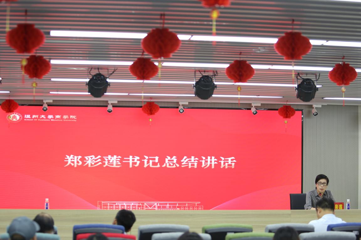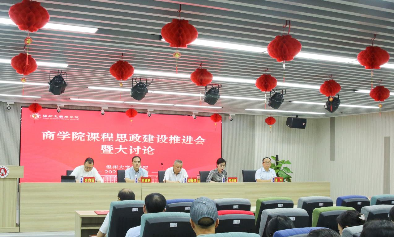 为执行《浙江省教育厅办公室关于开展高校课程思政教学项目建设工作的通知》要求,做好课程思政建设的引领与示范作用,按照学校统一部署,5月11日下午第一部分的会议由学校中层干部在南校区雁山厅参会,全体教师在线参会,第二部分会议由各学院分会场召开课程思政大讨论。学院在仲辉商道讲堂组织召开“课程思政”教育思想大讨论研讨会,学院党政班子成员、全体教师参加会议。会议由学院书记郑彩莲主持。