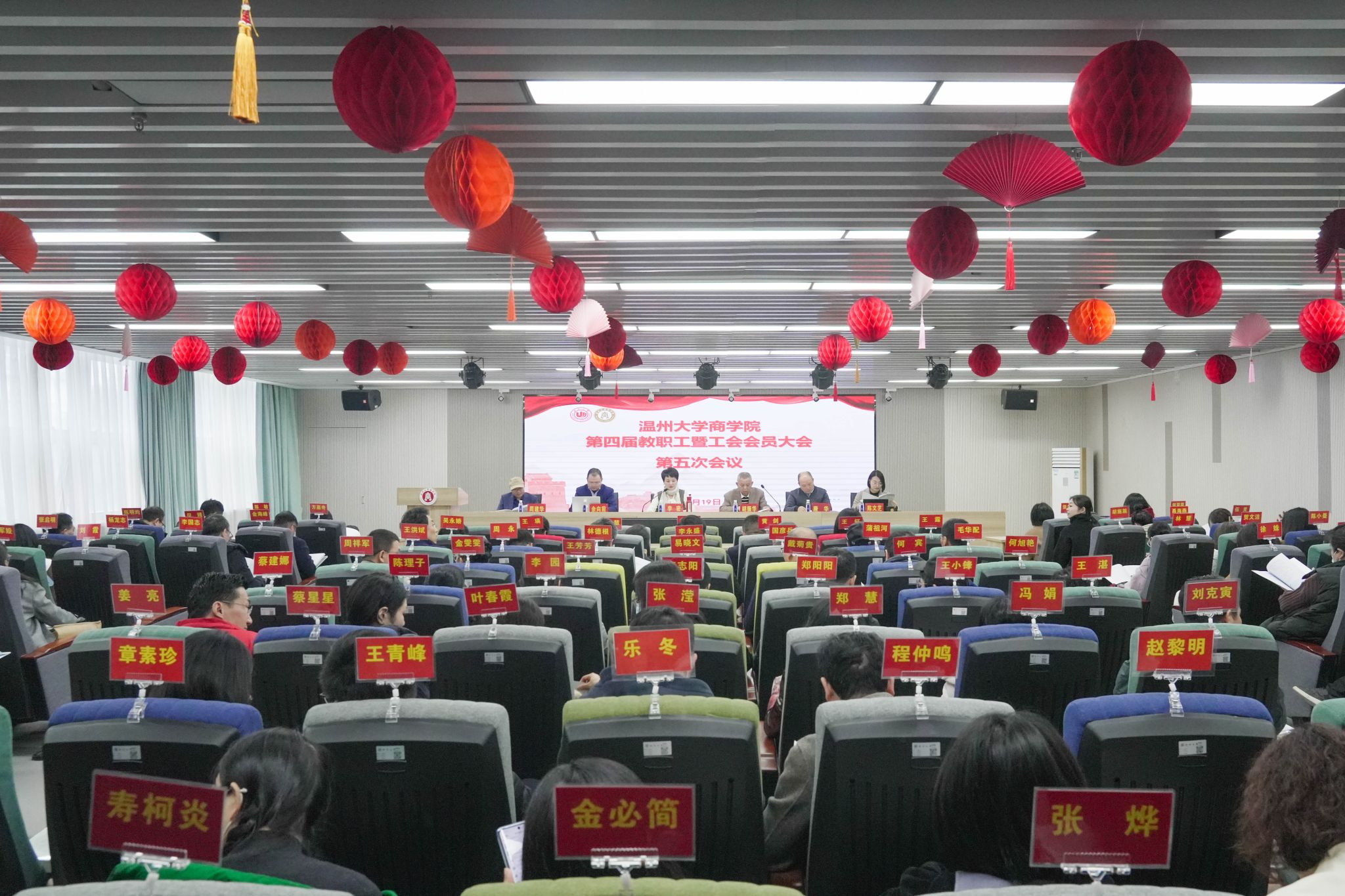 工会主席周建华作《温州大学商学院2023年度工会工作报告》。